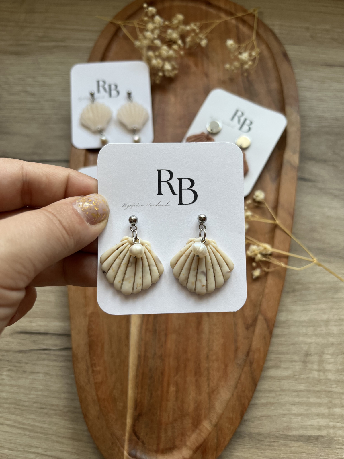 Descoperă frumusețea bijuteriilor handmade cu acești cercei scoică din lut polimeric, decorați cu perlă naturală de cultură. Realizați manual cu atenție la detalii, cerceii sunt ușori, confortabili și potriviți pentru purtare zilnică sau ocazii speciale. Forma de scoică, lucrată din lut polimeric, aduce un aer estival și boem, iar perla de cultură adaugă un plus de eleganță clasică.